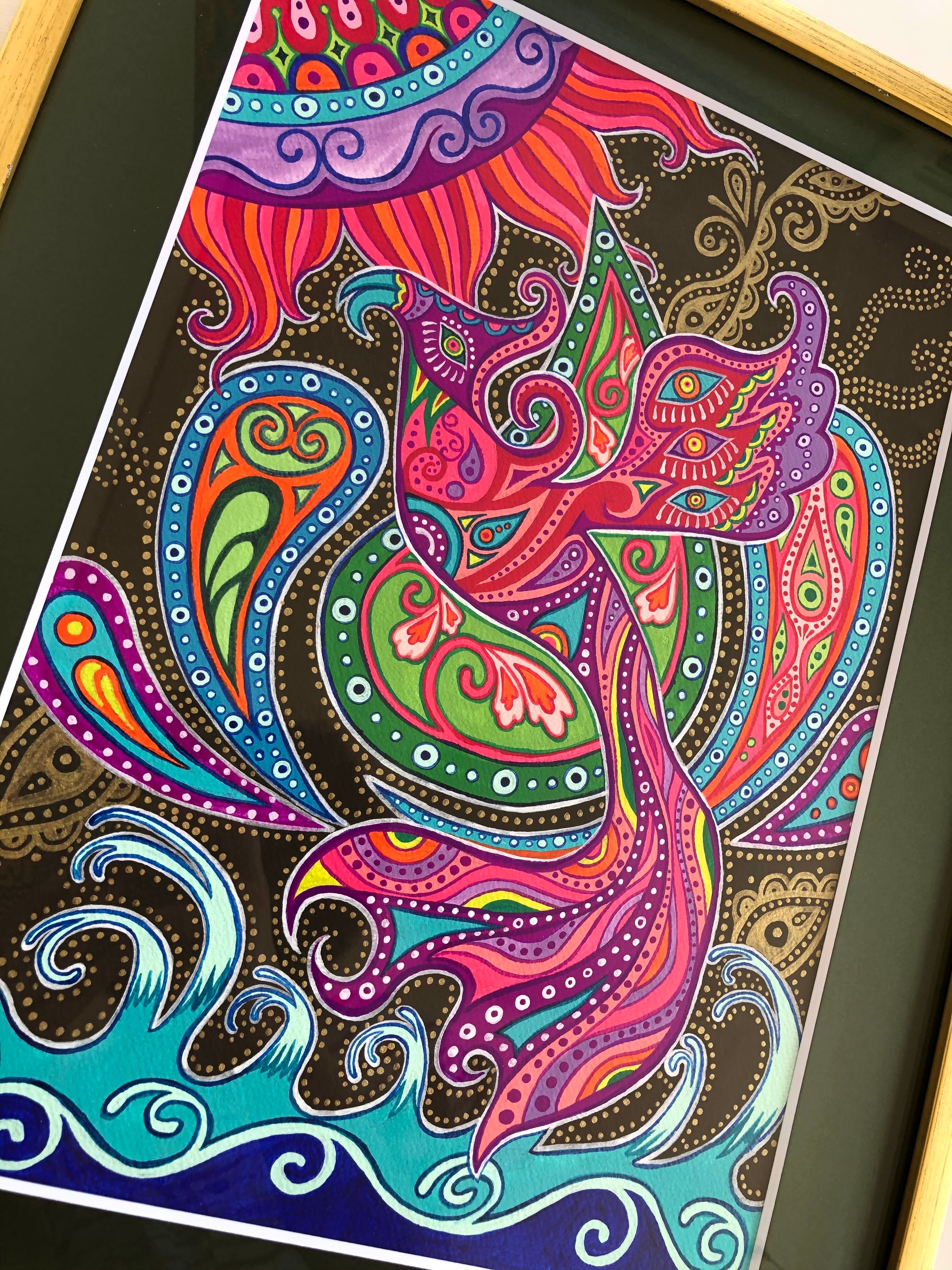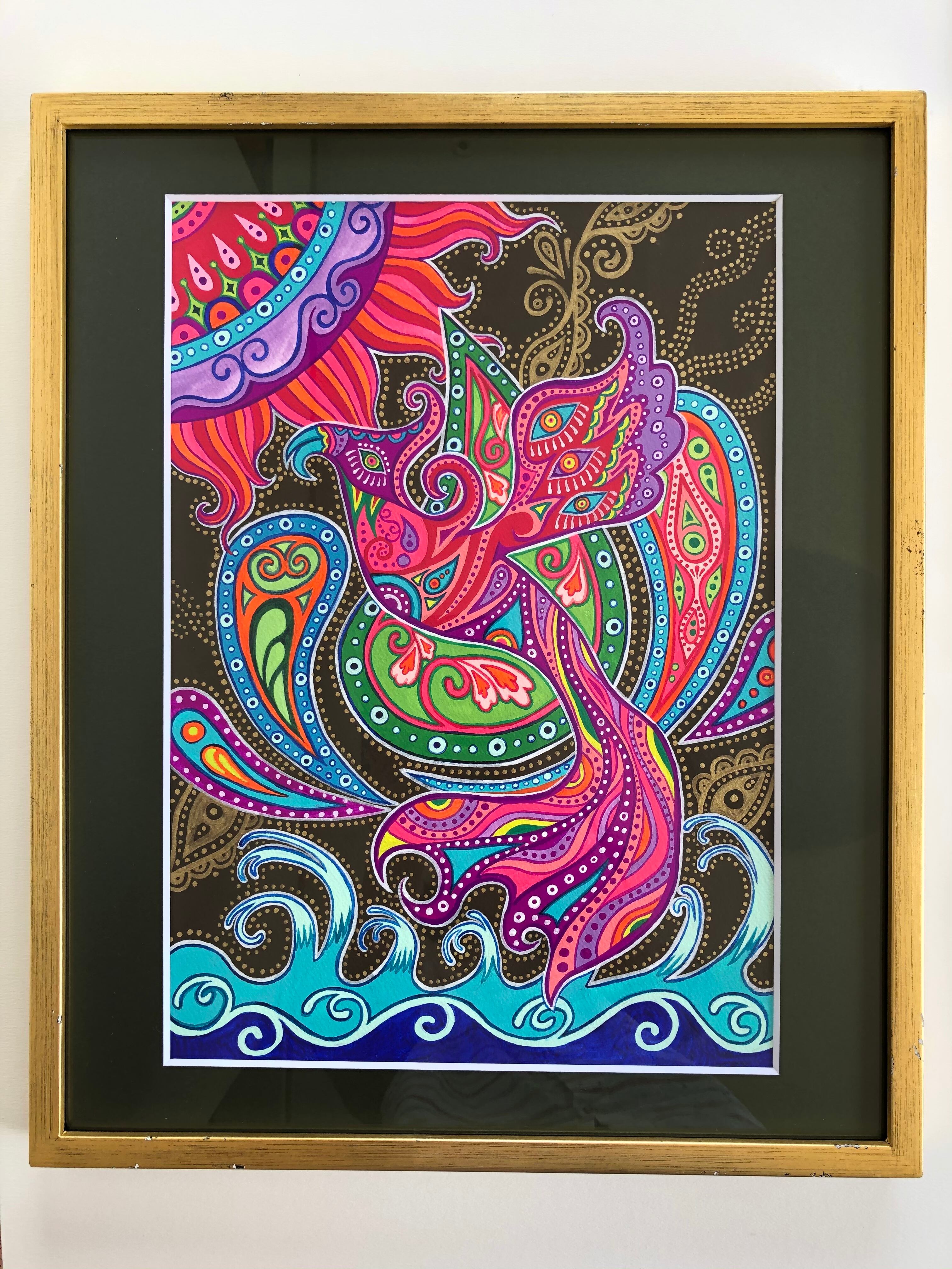 (額込のサイズ→縦:約44.0cm×横:約36.5cm)【素材:アクリル絵具、アクリルガッシュ、イラストボード】