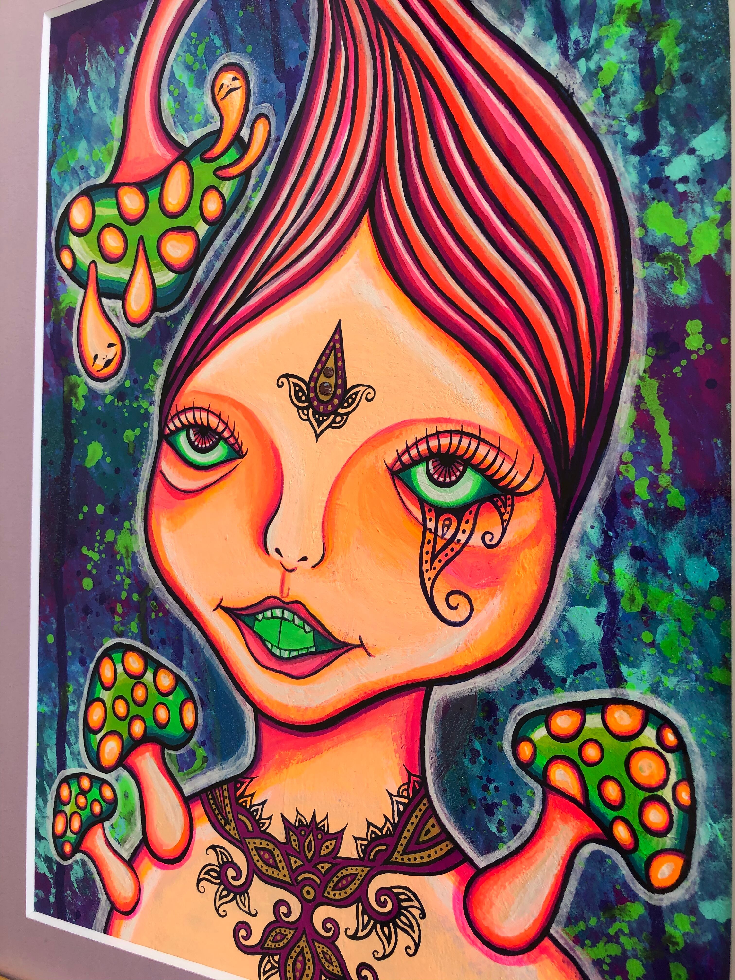 (額込のサイズ→縦:約44.0cm×横:約36.5cm)【素材:アクリル絵具、アクリルガッシュ、イラストボード】